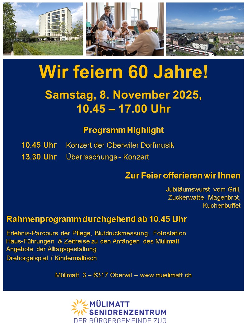 Oberwiler DorfmusikKonzert08.11.2025 - 10:4560 Jahre Seniorenzentrum Mülimatt Eintrittspreis--Veranstalter*innenSeniorenzentrum Mülimatt WebsiteLocation